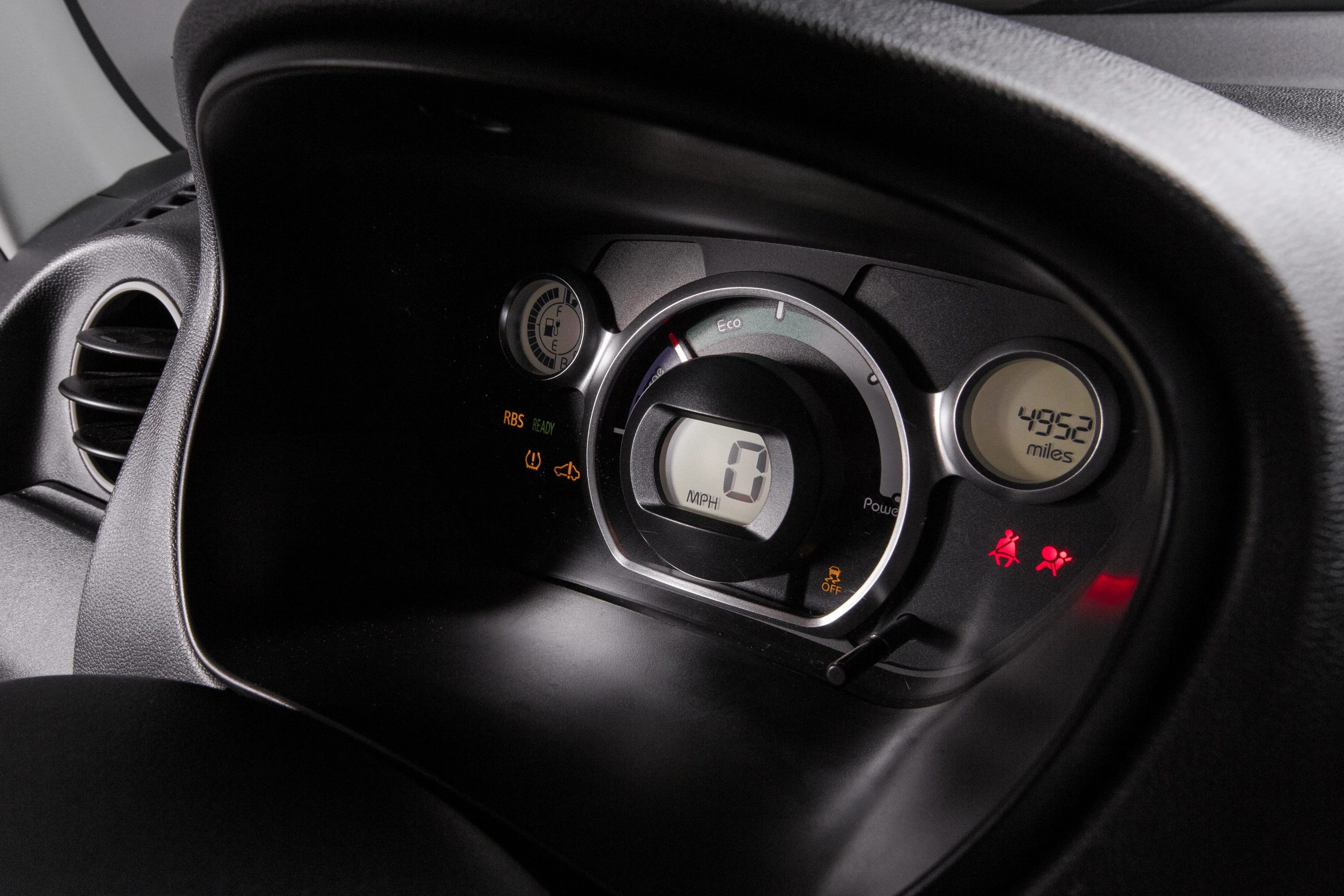 Den Mitsubishi i-MiEV 16 kWh har begrænsede opbevaringsmuligheder i kabinen.